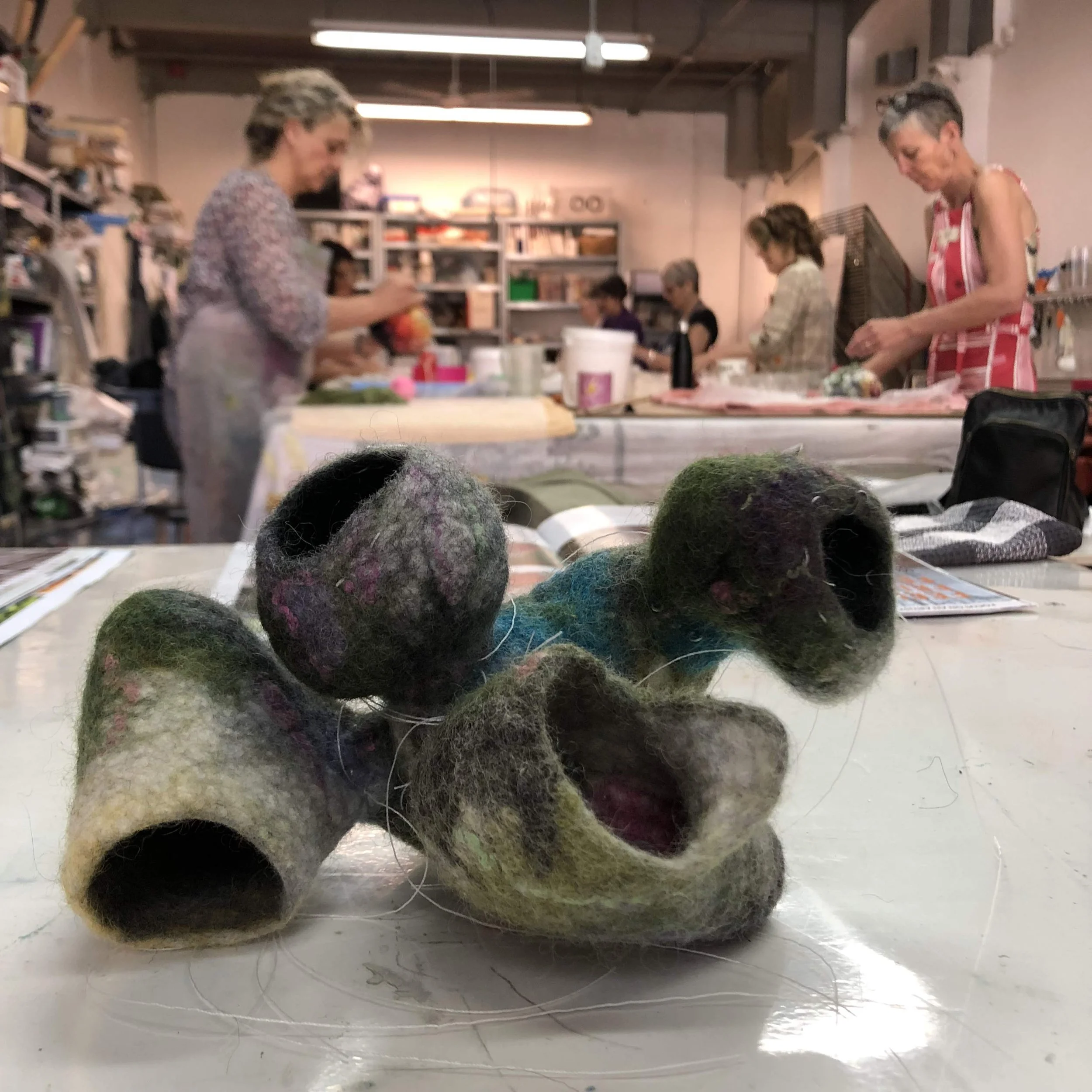 In this 3-day experimental discovery workshop, students will be challenged to play using sculptural felting techniques, deepening their awareness of the creative process with a focus on the journey and not the end result. We will explore different sculptural form ideas including folding and unfolding, building relief and adding shape to surface, while investigating colour, design and concept, all to become more aware of how, and why, we want to use this medium.